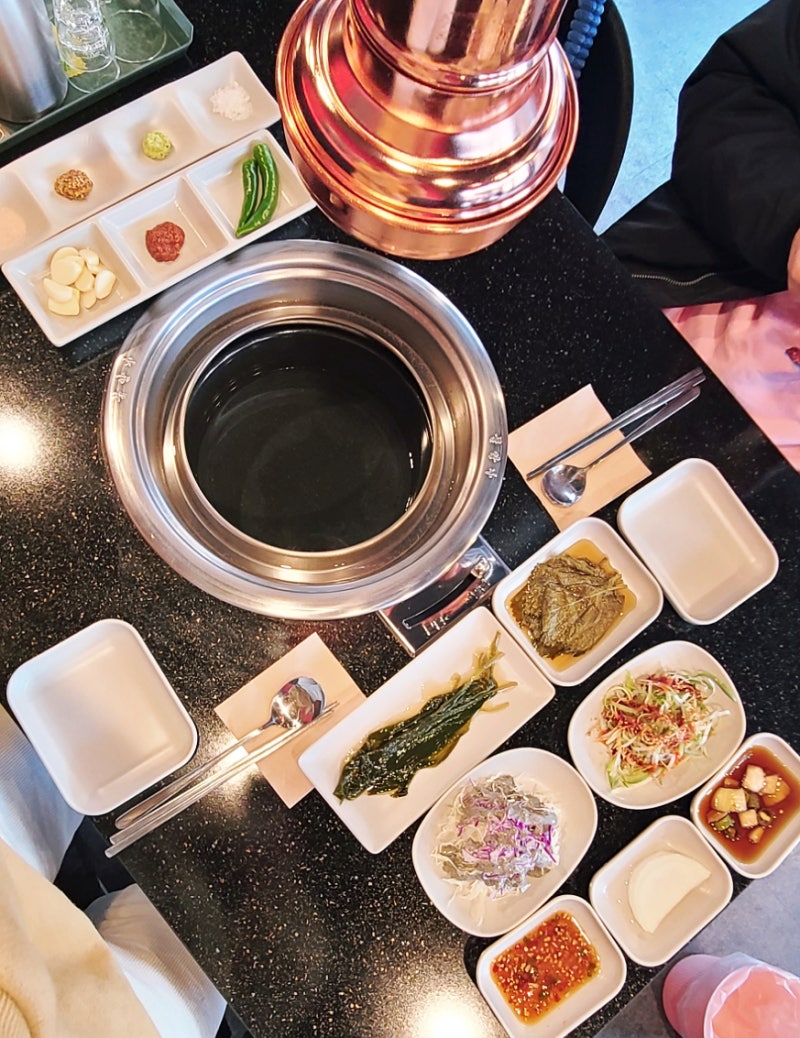 솔밭공원역 근처에 있는 랑원담은 고기집인데 된장찌개가 정말 맛있습니다. 세트메뉴를 주문하고 받은 된장찌개 맛에 반했습니다. 짭조름하고 진한 쇠고기 된장찌개를 한 숟가락 맛본 후 바로 밥 한 공기를 주문했습니다.