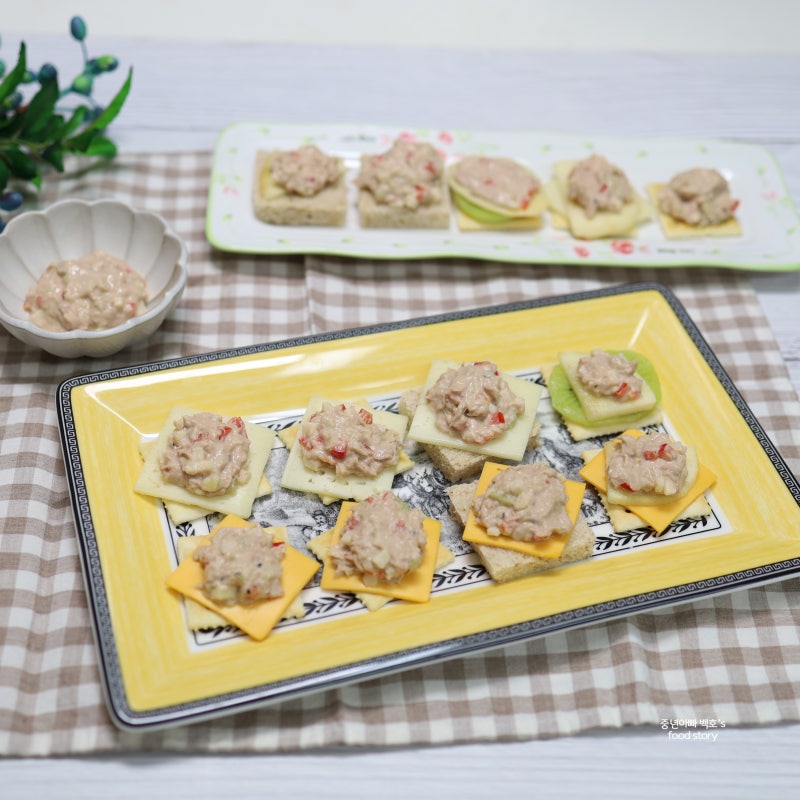 카나페 재료에 따라 다양한 맛을 즐길 수 있습니다. 고소하고 상큼한 맛이 일품인 참치 카나페를 요리해 와인과 함께 가벼운 홈파티를 즐기기에도 좋다. 참치샐러드 만드는 방법과 크래커와 조합해 예쁘게 만드는 방법을 차근차근 배워보자.