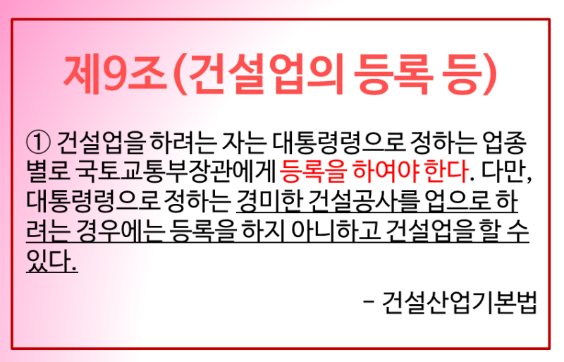 12개의 전문건설업종 중에서 포장사업과 관련된 면허를 취득하는 방법을 알아보겠습니다. 이 업종은 도로, 활주로, 광장, 하역장 등을 시멘트 콘크리트와 투수성 콘크리트로 포장하는 공사를 하며, 아스팔트 콘크리트 공사, 과속방지턱 설치 공사, 시멘트 콘크리트 포장 공사, 유색 및 투수성 콘크리트 포장 공사 등의 공사를 합니다. 건설공사를 하려면 건설업으로 등록해야 하며, 이는 건설사업기본법 제9조에 명시되어 있습니다. 면허를 취득하기 위해서는 등록기준을 충족해야 하며, 총 4가지의 등록기준이 있습니다.