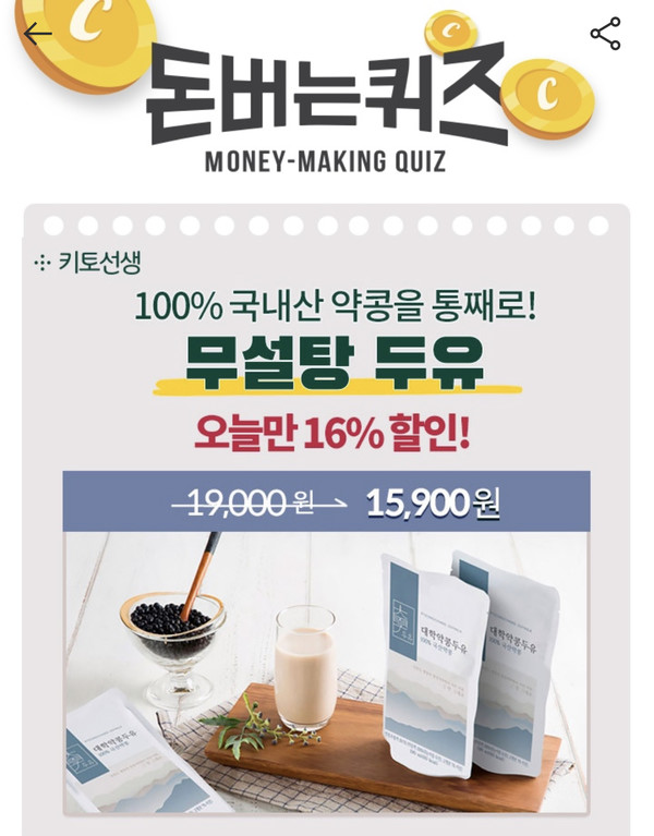 데일리 캐쉬워크 적립 퀴즈 정답, ‘행복한 뷰티’를 검색하세요. #11月1日赚钱问题问题#鬼头老师#大学药豆豆汤최대한 빨리 정답을 찾으려 노력하지만, 조금 늦더라도 댓글로 공유해주시면 큰 힘이 됩니다. 여러분의 많은 공감과 구독 부탁드립니다. 여전히 감칠맛을 느낄 수 있지만 OO는 무엇입니까? 답변: “대학 약 두유”는 콩의 칼슘 부족을 보충합니다. 해조류에서 추출한 해조류 분말을 첨가하여 콩의 부족한 영양을 채워줍니다. 답변: 임산부를 위한 3차 테스트를 위해 평창과 정선에서 정성껏 키운 100% 국내산 약콩입니다. 1팩당 약 140캡슐, OOOO 통콩을 껍질과 함께 가공 및 분쇄하여 일반 두유보다 맛과 영양이 풍부합니다. OOOO가 무엇인가요? 답: 모판법의 네 번째 퀴즈 “대구약 두유”는 첨가물이 전혀 들어있지 않아 더 건강합니다. 맛과 건강을 모두 고려한 대학야크 두유는 합성향료, OOO, 유화제를 일체 사용하지 않아 약콩 본연의 맛있는 맛과 영양을 그대로 느낄 수 있습니다. OOO가 무엇인가요?답변: Stabilizer 11월 1일 응용 기술 퀴즈에 대한 답변 보기