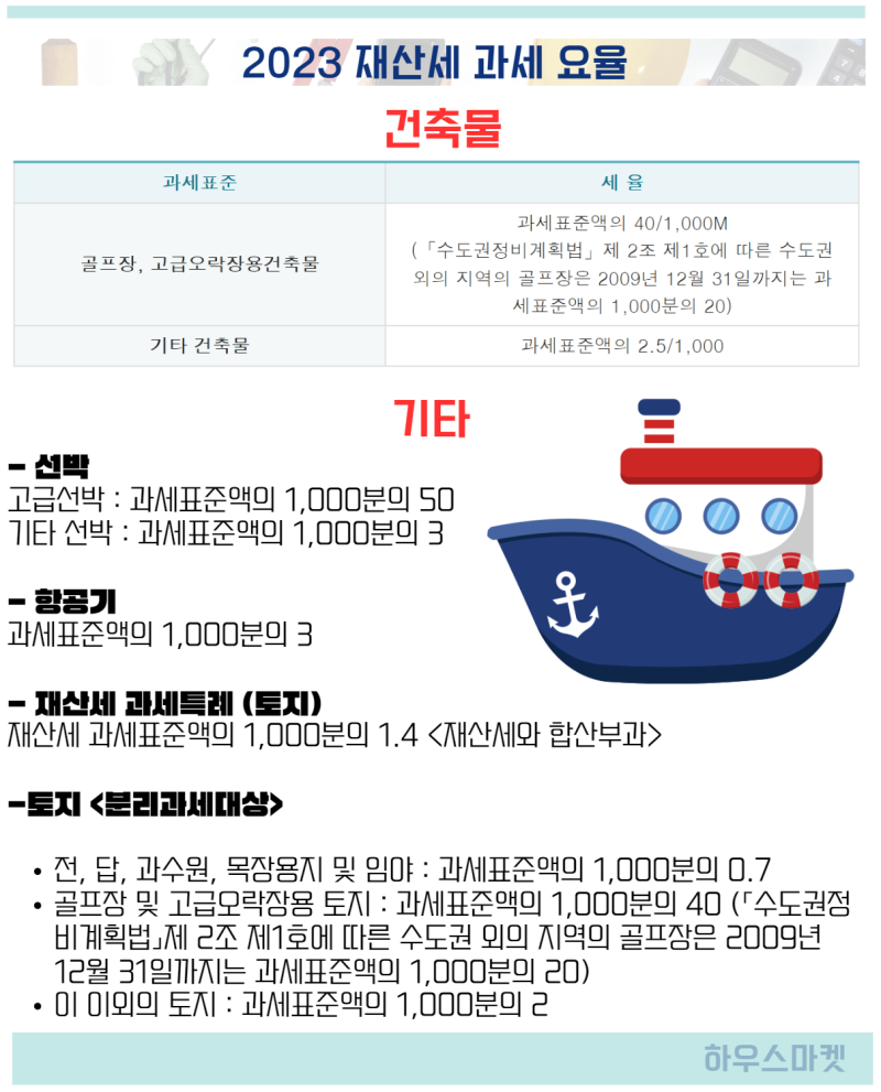 주택과 토지에 대한 세율은 설정된 과세표준에 따라 위 표와 같이 결정되며, 주택은 6천만원, 토지는 5천만원에서 세율이 인상됩니다. 골프장, 고급 엔터테인먼트 센터, 기타 건물 등 건축물의 경우 건물 규모에 따라 재산세가 부과됩니다. 또한, 선박, 항공기 등에 대한 재산세는 위와 같이 과세표준액의 일정 비율로 부과됩니다. 9월의 경우 ① 주택가격이 20만원을 초과하는 경우 7월과 9월 두 차례에 걸쳐 ②토지분에 한하여 납부합니다. 재산세를 카드로 납부하면 받은 청구서에 따라 납부하는 방법, 가상계좌(ARS 1899-0341)를 사용하는 방법, Witax를 사용하는 방법, 은행 ATM에서 신용카드를 사용하는 방법 등 다양한 방법으로 재산세를 납부할 수 있습니다. 이 중 재산세를 카드결제로 받을 수 있습니다. 혜택에 대해 궁금해하시는 분들이 많아서 자세하게 정리해보았습니다. – 국민 : 서울시 납부시 1,500포인트 제공, 1차, 2차 합산시 1인당 3,500포인트 제공 – 신한 : 납부금액 대비 0.17% 캐시백 포인트 제공 – 우리 : 3개월 무이자 이벤트 – 현대 : 재산세 5만원 이상 납부시 3개월 무이자 큰 금액은 아니지만 없는 것보다는 낫다고 생각하니 가능하다면 신용카드로 납부하시고 위의 혜택도 활용해보세요. 기한 내에 납부하시고, 추가수수료 납부보다는 카드사 혜택을 활용하여 재산세를 납부하시기 바랍니다.
